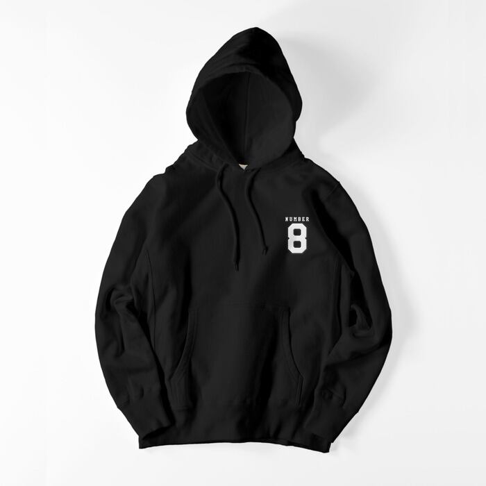 【メンズ】8(エイト)カレッジロゴワッペン刺繍プルオーバーパーカー NUMBER8 ブラック×ホワイト
