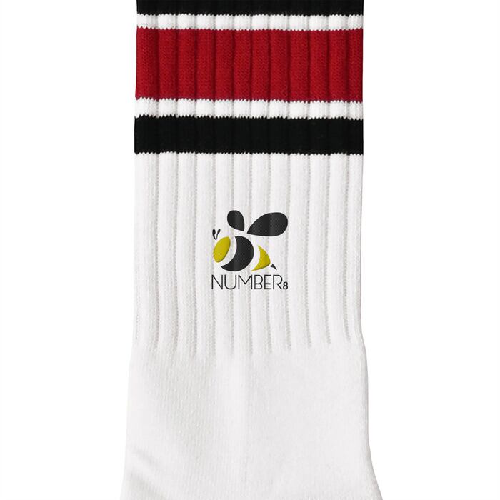 NUMBER8 蜂(ハチ)刺繍ロゴスケーターソックス レッド×ブルー