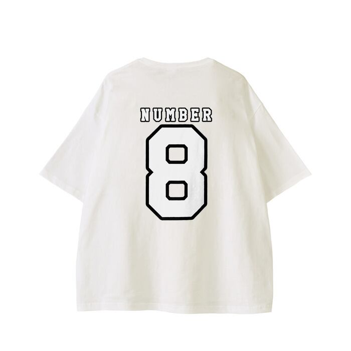 NBR8(ナンバーエイト)カレッジロゴユニホーム風ビッグシルエットポケットTシャツ ホワイト