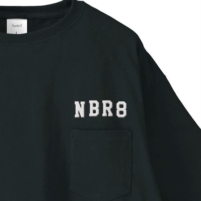 NBR8(ナンバーエイト)カレッジロゴワッペン(刺繍)ビッグシルエットポケットTシャツ ブラック